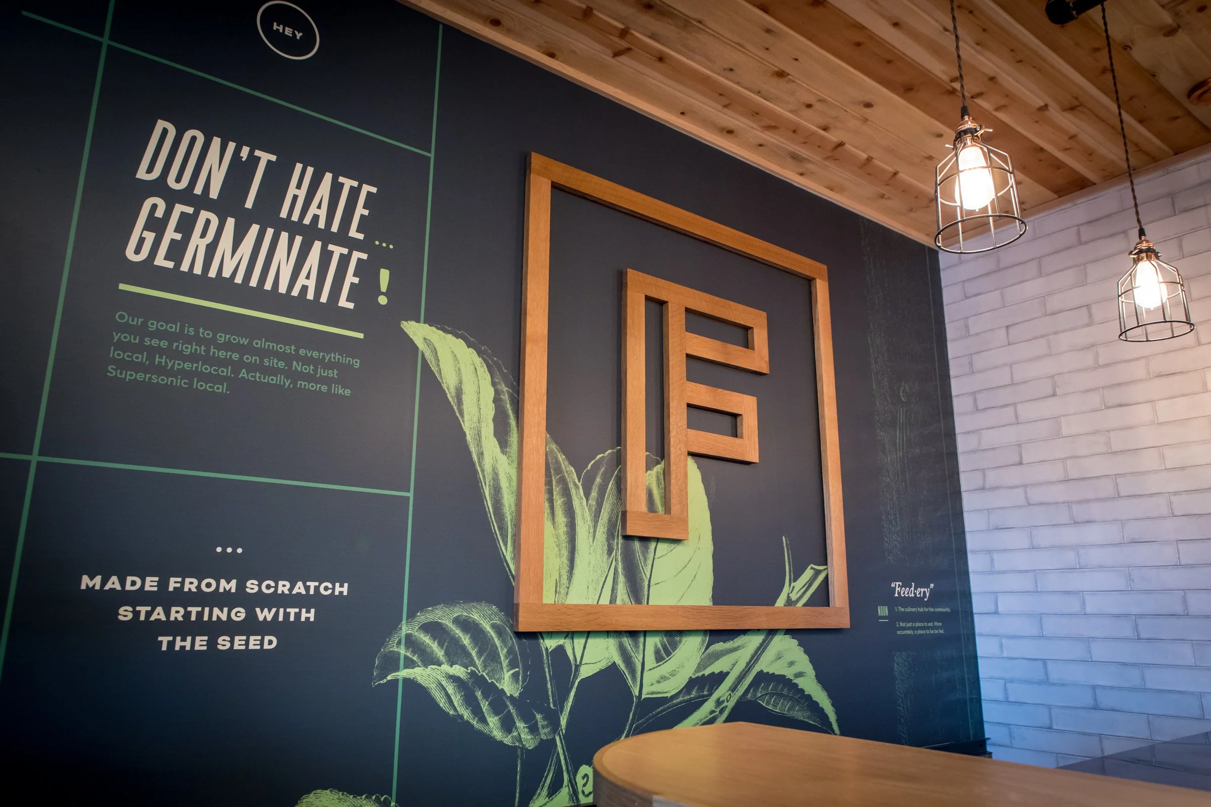 Grow + Gather is a concept born from the heart of a tech-veteran looking for a meaningful transition. He had purchased an old, neighborhood auto shop with big dreams of making an urban oasis, growing food and feeding community, both literally and figuratively.